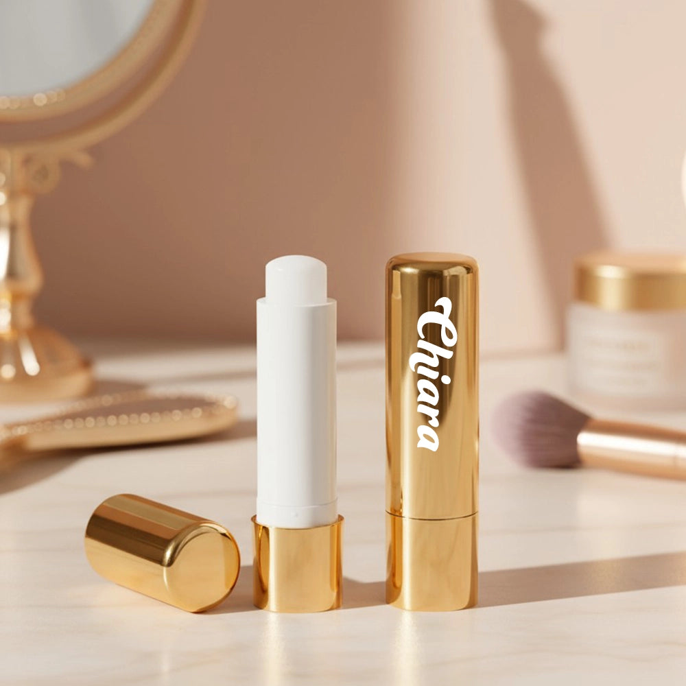 Il burro di cacao stick personalizzato protegge e idrata le labbra grazie alla sua formula dermatologicamente testata e al fattore di protezione SPF 10.