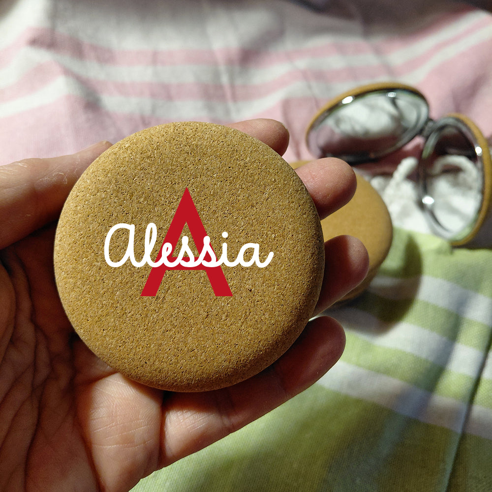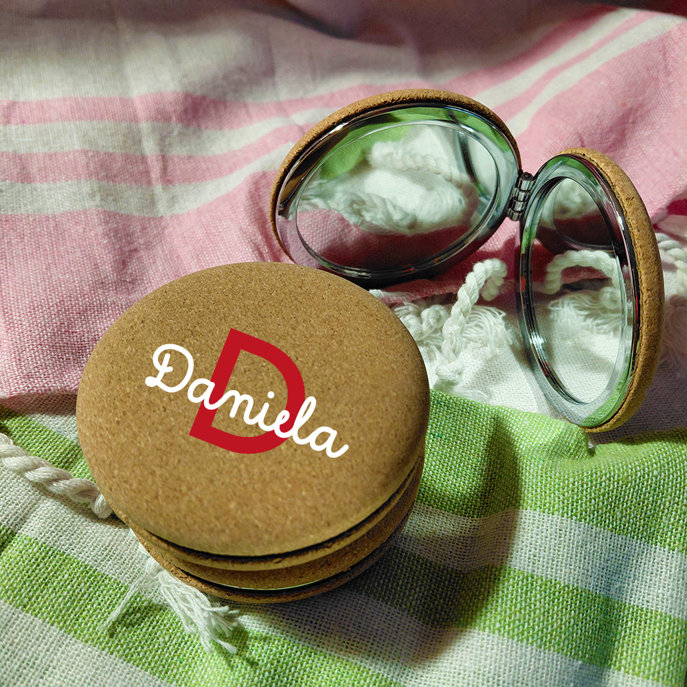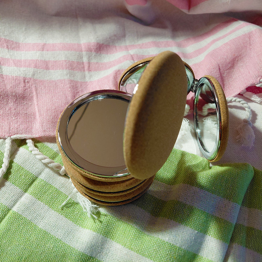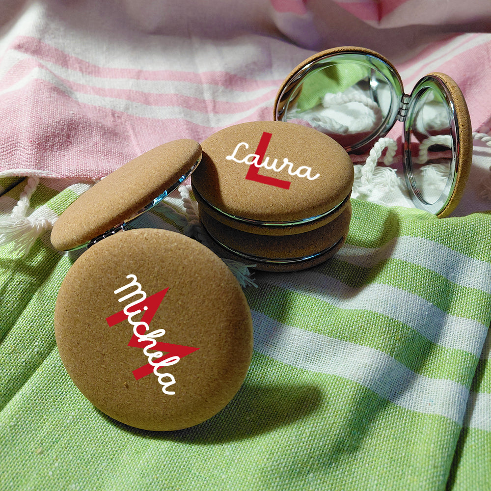 Il nostro specchietto in sughero tondo personalizzato unisce praticità e sostenibilità in un accessorio unico. Con finiture in metallo cromato.