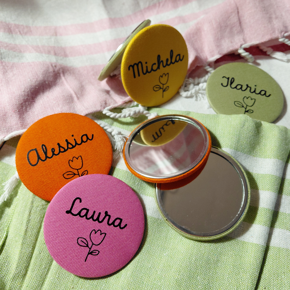 Piccolo, colorato e pieno di personalità: il nostro specchietto tondo personalizzato è l’accessorio che unisce stile e praticità.