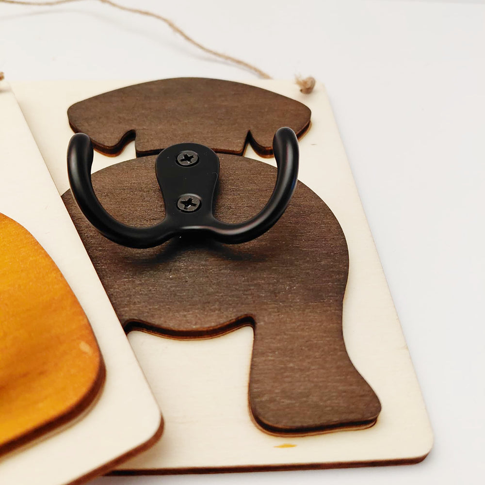 Sopra alla sagoma trovi un comodo gancio per appendere il guinzaglio, il collare o quel laccino misterioso che il peloso continua a rubare dalla borsa.